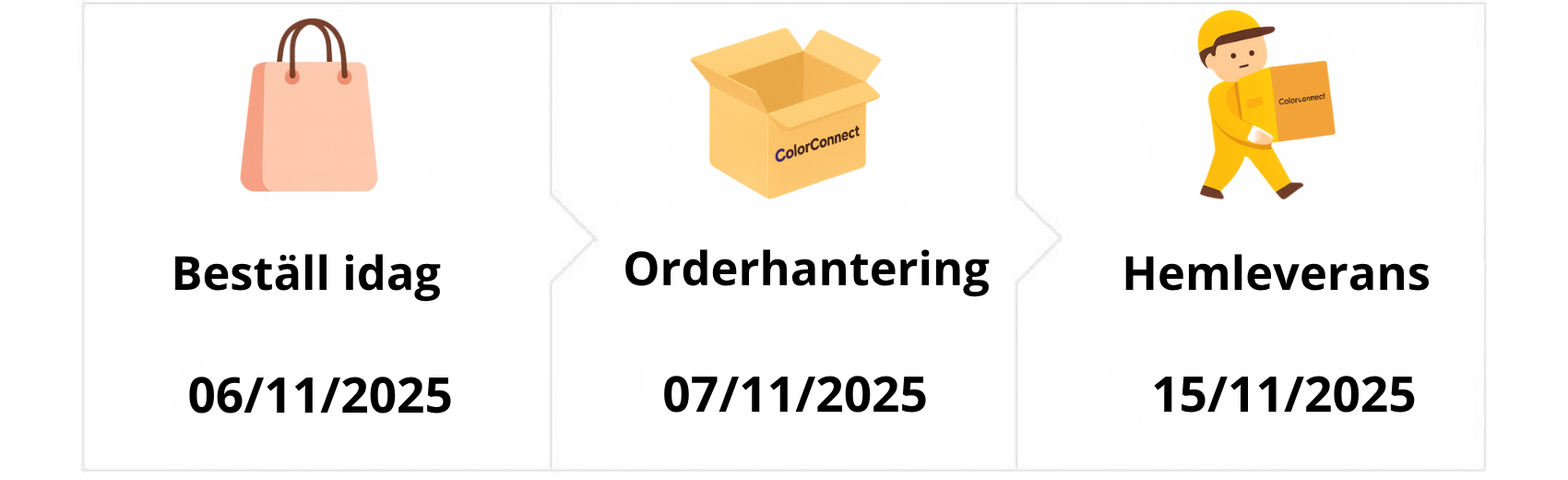 Du får all leveransinformation i ditt bekräftelsemejl.